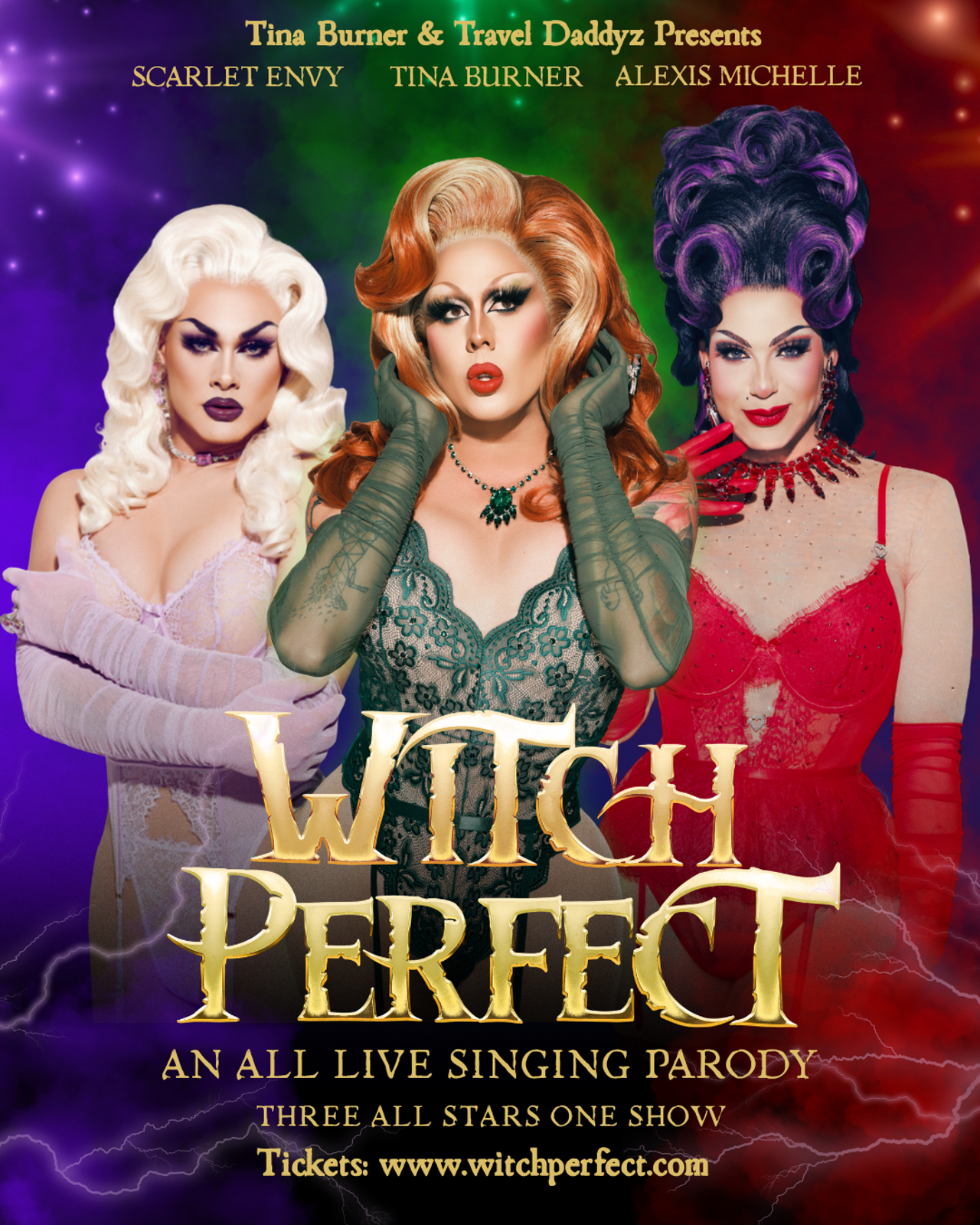 The hysterical award-winning spooktacular, Witch Perfect, is an all live-singing, comedy parody based on the cult-classic and audience favorite film Hocus Pocus featuring Tina Burner, Alexis Michelle, and Scarlet Envy.