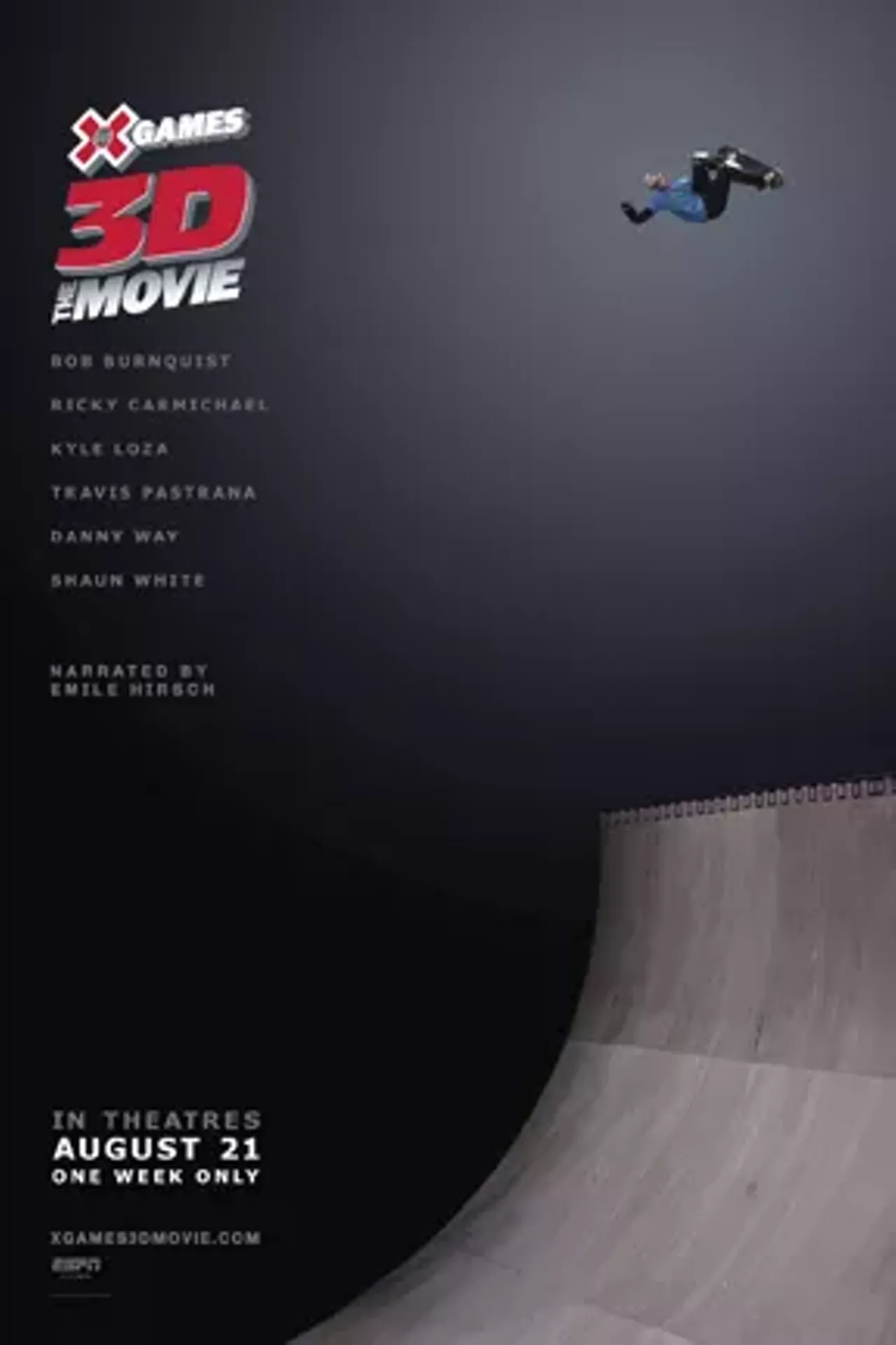 Filmmaker Steve Lawrence goes behind-the-scenes at the 2008 summer X Games for an unprecedented look at the event, capturing all of the raw emotion and drama. Among the featured athletes are Shaun White (skateboarding and snowboarding), Travis Pastrana (moto x and rally-car racing), Danny Way (skateboarding), Ricky Carmichael (moto x), Bob Burnquist (skateboarding) and Kyle Loza (moto x).