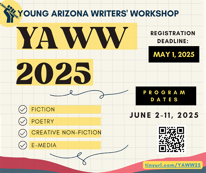 The Young Arizona Writers' Workshop is a 10-day intensive (June 2-June 11) in writing fiction, poetry, and creative nonfiction. Young writers (rising grades 9-12) should apply by May 1.