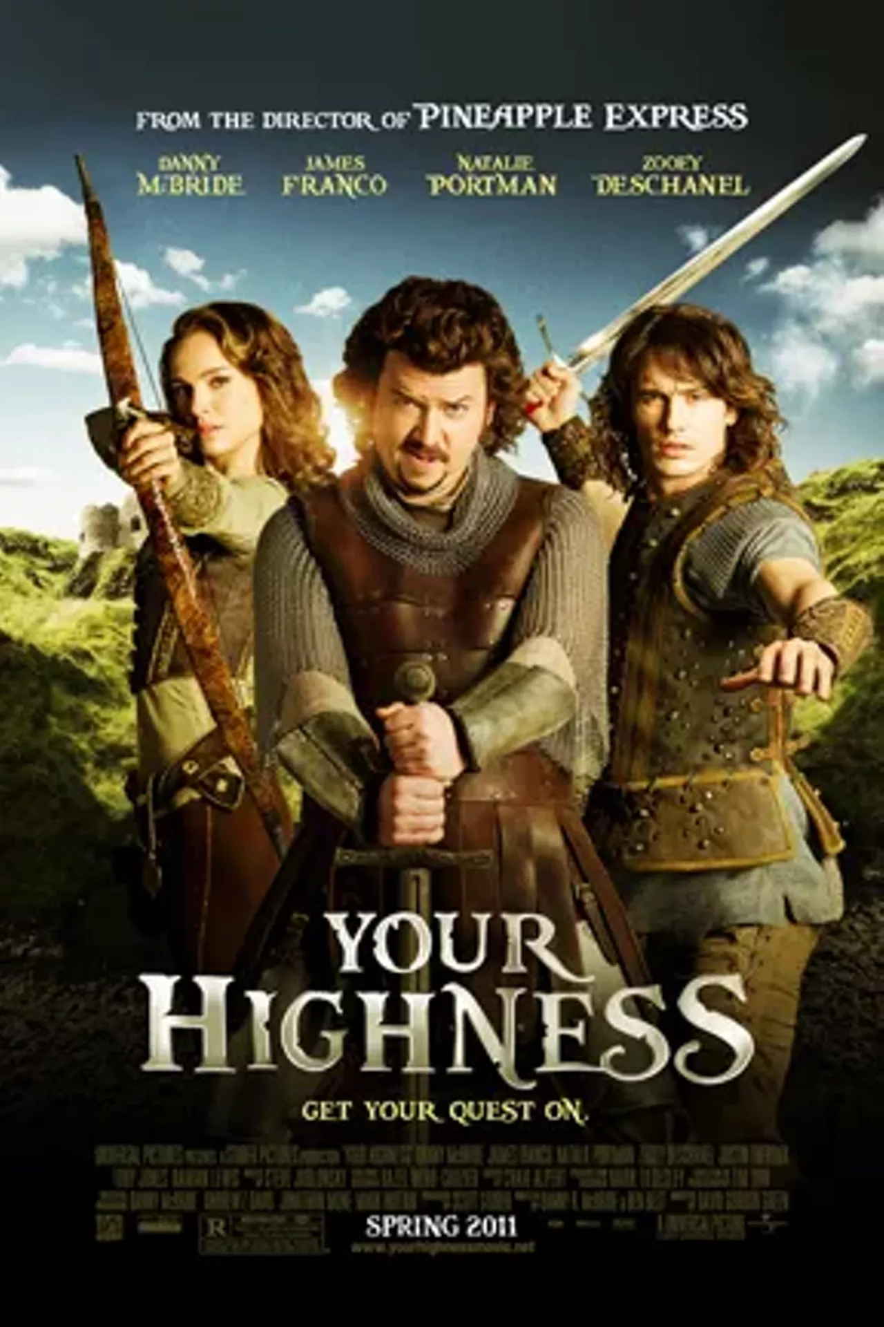 David Gordon Green, director of the hilarious Pineapple Express, delivers this hugely disappointing medieval comedy dud. Danny McBride (who wrote the screenplay) stars as the naughty son of a king (Charles Dance) who lives in the shadow of his heroic older brother (James Franco). When the older brother’s bride-to-be is kidnapped by an evil wizard (Justin Theroux), the two must go on a quest to rescue her. The film wants to evoke Monty Python, but instead seems like the very worst of Mel Brooks. Only Theroux manages to get consistent laughs, although Franco does well as the straight man. While some jokes get a few giggles, many of them fall flat or feel ripped off. (You know you are in trouble when you are ripping off a joke from Mel Gibson’s Apocalypto.) Natalie Portman shows up and is given little to do. This is a dud that breaks my heart.
