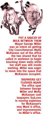 BUY A MAP, TOOTS Scottsdale Mayor Sam Campana promised to no longer call 911 to ask emergency operators for directions while driving around the town she runs. But the Mayor, who punched 911 when non-emergency police lines were busy, said she'll continue the latter practice, calling it an appropriate use of police resources. "I only use it under duress," Campana said. BREW-HA-HA Lee Thorn, a veteran of 22 years as an instructor at Pima College, was pulled from his class by campus cops and slapped with three misdemeanor charges for downing a beer in the faculty lounge before class. During his trial, Thorn told Judge Emojean Girard that he had a right to imbibe in the lounge, just like a judge could down a drink before hearing such a "ridiculous" case. He was convicted. STAR: DIM AND DIMMER As part of The Arizona Daily Star's crack political coverage, the paper missed the start time of the vice presidential debate by three hours. The paper ran a page-one correction, noting that the time was right for Hawaii. IT DREW A HUGE CROWD ON PAY-PER-VIEW AT BOB DOBBS Dan Shay and Scott Douthitt, two employees in the city's finance office, got into a fist fight in a stairwell at City Hall. "I hit at him, then he rushed me," explained Shay. "We both fell down and I heard clothing rip. All I was thinking while we were grappling on the floor was that I just didn't want to lose this fight." AND HIS POLL NUMBERS STILL WENT UP Unsuccessful Reform Party candidate Ed Finkelstein, and Joe Sweeney, who failed in his bid to unseat gay Congressman Jim Kolbe, were cited by police for defacing Kolbe campaign signs. The two attached stickers to Kolbe's signs alleging that, "Kolbe raped a boy!" PIÑON NUT At an assembly of students from the Navajo Reservation community of Piñon, called after several youngsters were caught smoking marijuana, Piñon High Principal Louis Jumper said, "If you're spending your money on dope dealers, you're just a dumb Indian." LET'S JUST BE HONEST ABOUT IT AND CHANGE THE CITY'S LETTERHEAD FROM OLD PUEBLO TO MURDER, INC. Between October 5 and October 12, six homicides occurred in Tucson, making it the deadliest week in the city's history. TRAIL MIXER Bob's Bargain Barn, a store specializing in outdoor gear, held a singles night that included live lounge music, designer coffee and Yuppie desserts. WHAT A BUZZKILL When teen father Peter Castro threatened to shoot his infant son in September, a Tucson SWAT team surrounded his apartment complex and used a megaphone to negotiate with him. When Castro ended the one-hour stand-off by surrendering, police discovered 30-year-old Gabriel Salazar had also been in the apartment, but had ignored the whole thing.