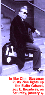 The Memphis Commercial Appeal calls him "the real deal. At only 25, Zinn sounds like he came out of a time machine marked 'Chicago, 1950.' His singing has the kind of effortless Roy Brown demeanor that no one, black or white, has today." Tonight Zinn comes to Tucson as part of the Rialto Theatre benefit concert series, with funds earmarked for renovating the campy old hall. Performance is 9 p.m. in the Rialto Cabaret, 201 E. Broadway. Tickets are $5 and available at Hear's Music. For information, call 740-0126. TINY TUNES. Little ones turn out en masse when the Tucson Symphony Orchestra's Piano Trio presents Just For Kids, part of their ongoing Downtown Saturday in the Arts District series. Joined by tunesmith John Denman, the trio performs a new musical fable by Michael Fan, based on a children's story. Audience members can also tap their own nubile imaginations with the help of TSO's Magical Musical Story Machine. Free performances are 10:30 and 11:30 a.m. at the Temple of Music and Art, 330 S. Scott Avenue. Call 792-9155 for details.
