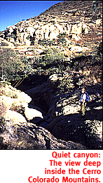 way into the heart of the Cerro Colorado Mountains. These cliffy