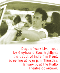 FILM FRONT. The folks of Potential Urge Productions present a glimpse into the narcotics trade with Front. This film follows the nefarious adventures operation in and around this region, with a great soundtrack by various local bands. Tonight, several of those groups, including Greyhound Soul, Creosote and Al Foul and The Shakes, will be on hand for a screening of Front at 7:30 p.m. in the Rialto Theatre, 318 E. Congress St. Tickets are $10 at the door. For information, call 740-0126.
