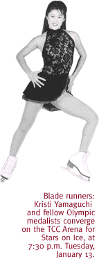 Sue Ward, director of the UN Association of Southern Arizona, recently visited the troubled country as an elections monitor. She'll discusses her trip, and the region's prospects for peace, with a free slide lecture at 7 tonight in the Unitarian Universalist Church, 4831 E. 22nd St. Call 623-8905 for details. CHILL'IN. Former Olympic skating champs like Kristi Yamaguchi, Scott Hamilton, Katarina Witt and Paul Wylie today bring their well-honed talents to Tucson with the glitzy Stars on Ice Tour. They'll do their thing to music ranging from Led Zeppelin to Louie Armstrong, and soundtrack tunes from Sleepers and The Wizard of Oz, among other classics. Event is 7:30 p.m. in the TCC, 260 S. Church Ave. Tickets range from $38 to $50, and are available at the TCC box office, Dillard's, or by calling 791-4266.