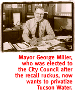 Of course, the ousted Democrats see the recall results differently. Garcia thinks it made local politicians more likely to duck difficult issues and afraid to take positions necessary for the good of the community. Kennedy says the recall changed politics for the worse in Tucson by scaring off qualified candidates for office for several years after the election. Cauthorn says it's easy to overestimate the recall's impact. The inequities in water bills--due to the lack of lift charges--are still with us, he noted. In Weymann's view, history has vindicated the ousted council members. She says they changed water policy in Tucson for the better, adding they were absolutely right in what they did. But, she noted, "The builders and car dealers wanted us out from the beginning." Weymann also says the growth issue had nothing to do with the lift charges. Kennedy agrees. Garcia says the lift charges were really a matter of social equity--necessary if the city is ever going to bill the actual cost of delivery to a customer. Even today, some members of the current council are critical of the situation in which in-town residents, many of them poor, are subsidizing the rates of their better-off neighbors in the foothills. But don't expect any of the current council members to go around spouting the idea of simple fairness. Weymann, Garcia and Cauthorn admit they were "politically naive," "inexperienced," and "pretty stupid" to have hiked water rates during the summer months. But all four Democrats still believe they did the right thing. Kennedy says, "No water system improvements then would have been the ultimate no-growth position." The recall helped to bring Tom Volgy to the city council, and later he became mayor. He believes the recall limited Tucson's ability to deal with its water problems. "If there hadn't been a recall," Volgy says, "maybe we'd have stumbled into a more creative water solution. Because, after the recall, people were afraid to make an error like that again." Volgy agrees the actual issue in the recall election was not water rates. Instead, he says, it was all about who controls development in Tucson. Volgy describes the four ousted Democrats as bright people who made one big political mistake. The recall made them pay for that mistake and sent out a terrible message about making an error in local politics. It resulted, he says, in people shying away from running for the city council. As we approach the 20th anniversary of the recall, Tucson is a much larger place than it was in 1977. Ironically, the water rate increases which led to the recall were needed to support that growth. Without the lift charges, new development could easily continue in the foothills and other areas outside the city limits. Would Tucson, currently with vast amounts of vacant land within the central city, be having to encourage infill projects within the city limits--as it is now-- if the lift charges had been allowed to stand?