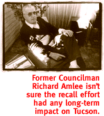Two years later it was Amlee and Cross' turn. Amlee decided not to seek another term, while Cross was defeated by Democrat Chuck Ford in the general election. Varga ran for mayor as an independent in 1979. Though he had an impressive second-place finish to Lew Murphy in the general election, his political career was over. But despite these election reversals, the basic message had been loudly sent--Tucson politicians should stay out of the way of the growth steamroller. For the past two decades, it has been a rare city council member indeed who questions any growth-related issue. But the recall movement didn't stem rising water rates. The money was desperately needed to expand the system to accommodate an ever-increasing population. The price of water continued to escalate. LOOKING BACK ON the recall after 20 years, what do those involved think it accomplished? Fitzgerald is the most enthusiastic. He says it "stopped no-growthers dead in their tracks." Tucson has grown and progressed tremendously since that time, he believes, so the recall did a lot of good. But, he concedes, the winning candidates melted under pressure and double-crossed the movement when they raised water rates. Lininger and Amlee are more subdued in their assessments. Lininger believes the four incumbents were using the water price hike to slow growth. While acknowledging that a recall is not a good way to change office holders, Lininger says the mood in 1976 was that people were being shafted by the City Council and the Water Department, so that's why it happened.