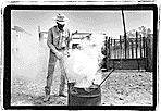 By now Keeylocko's restored the pigs to their proper place and returned to his Styrofoam cup behind the bar. "People think they can hack this sort of life," he says evenly. "This is tough. It don't bother me that it's hot, for example. But there's little things they have to have (like electricity). There's no television. "Winds up here reach 80 miles an hour; the tin, the roofs, they blow off every now and then. I wondered if (the state of) Utah would send me a bill someday and say, 'Come and pick up some of your tin.' It flies up there," he chuckles. "(The town's) a way that we just leave it. We don't want to change it. But I watch people in here, and they just can't stand the heat. So I'll have to do somethin' about that. I'll figure it out. I'll figure it out to do it a natural way." This "natural way" is more than just living without creature comforts. It's how Keeylocko keeps his town, enforces a code of western civility he expects his guests to respect and, most importantly, how he raises his livestock.