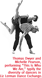 In Tucson, Lerman's 1986 "Still Crossing," commissioned for the Statue of Liberty Centennial, will be performed by the pros in the troupe along with a host of Tucson recruits, "guest dancers" from local Asian, Latino, Jewish and gay and lesbian groups. The professional dancers will perform the more difficult movements of the work, "a beautiful and abstract work about immigration," but then the stage will begin to fill with the neophytes. By virtue of their sheer numbers on stage, Lerman said, their simple gestures will become powerful. Lerman, who started dancing at the age of five, said she first got the idea of working with old people following the death of her mother many years ago. But no other companies at the time were doing anything like what she wanted to do. So she formed her own troupe. "I had these wild ideas and I wished other people would have them. Nobody else did, so I realized I had better take it on...I've been doing this for 20 years. It makes me sad that it's still so revolutionary.'' The choreographer, whose own age now falls right in the middle between her young dancers and her old dancers, tries to break down other art barriers besides those separating professional artists from lay people. Her dances incorporate the spoken word, and in recent years she's been making dances that investigate her Jewish identity. One of Saturday's pieces, "Faith and Science on the Midway," takes as its setting the St. Louis World's Fair of 1904, but "uses as its core a Hebrew prayer about sustenance." It's one phase of a larger work called "Shehechianu," a Hebrew word meaning "Gives us breath." But the concert, the second in UApresents' three-concert Millennium Project, will also have at least one dance to please those who like their modern dance pyrotechnical. " 'Fresh Blood' is very wild, very physical, very challenging. It's the most abstract piece on the program. Pure dance lovers will respond to it."