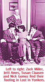 A surprise piece of casting is IT artistic director Susan Claassen as Bella, the sad young aunt who cringes under every nasty insult Grandma levels at her. Bella has some kind of brain damage, and she's a virtual slave to Grandma's whims, even while she longs for love and babies of her own. Claassen specializes in exuberantly eccentric characters, and she plays against type here, timidly contracting her body inward. The boys blossom under Bella's kindly attention, and one of the most touching moments in the play occurs when Jay loyally tries to help her find some happiness. Amy Lehmann does a fine comic turn in a small part as the gasping Gert, Grandma's other daughter. Gert's problem is that she can't breathe around her mother. Grandma is the most problematic character, and her viciousness is the play's central mystery. Uncle Louie (Jack Neubeck) gradually fills the boys in on her horrific childhood as a Jew in Germany, and her hard life as a young American widow who lost two of her six children. But her steely determination to make her way in a cruel world has done its own damage. She's a tough woman and that's how Ames plays her. In a sense, Grandma is the one lost in Yonkers, lost to happiness. The play just may be Simon's adult effort to excavate the tough love he is convinced burned beneath her thick skin.
