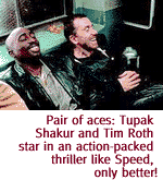 Shakur (who was shot dead only recently) manages to convey great likability and charm, even though his character is a thief and a drug addict. Shakur was a very handsome man and he's extremely pleasant to watch on screen; it's poignant to contemplate that we'll never see him again. Roth, as Stretch, isn't any more annoying in Gridlock'd than he usually is. Thandie Newton, who plays Cookie, is achingly beautiful, has a wonderful accent, and isn't a bit shy about taking off her clothing for the camera. What a cast! What a movie! And while we're at it, let's give a big hand to the crew, the forgotten folks of film production, including: Sarah Auerswald, additional script supervisor--second unit; Tom Bender, smoke special effects; Joe Camp, animal trainer; Diane Dragoo Duarte, chef's helper; Derek Jensen, best boy grip--second unit; and Ronald Beale, chiropractor. I'm sure these people all did a really great job.