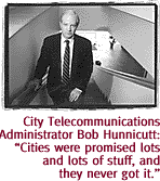 THE CABLE INDUSTRY is governed by a combination of federal and local policies. Local communities help regulate cable systems through license or franchise agreements, which allow them to require their cable operators to provide certain kinds of services and to make payments to the communites in exchange for using public rights of way to sell cable subscriptions. The arrangements give local governments the opportunity to ensure that cable systems operate in the best interests of their communities. One popular means for achieving that goal is by establishing provisions on a system for public, educational and government channels (PEGs), such as those operated by Access Tucson, the city government and other organizations. As mandated by the recently expired license, the cable system here has 13 channels designated for PEG use. Originally agreed to by the City Council and Cox Cable in 1981, Tucson's cable license has been renewed with amendments each time the system changed hands, and has been modified other times at the request of cable providers. The contract has been reworked no fewer than a dozen times, extensively reducing the obligations of providers over the past 15 years. According to Bob Hunnicutt, the city's telecommunications administrator, the amendments show a consistent pattern of cable providers trying to get out of provisions of the license agreement. Hunnicutt is responsible for coordinating the license renewal process and for making recommendations on cable policy to the city. "Usually every time the system is sold, an operator says, 'Fine, but we ain't doing all this,' " says Hunnicutt.