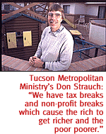 The Rev. Manuel Moreno, Bishop of the Diocese of Tucson, believes "our poverty has something to do with the fact that we are close to the border, and also we are a transition point between east and west. People come here hoping to make it." Brian Flagg, of the Casa Maria charity soup kitchen, points to the income disparity between different parts of town. "Apartheid is alive and well in Tucson," Flagg says. "Economic opportunities aren't going to the southside." Tucson City Manager Luis Gutierrez attributes part of the blame for Tucson's high poverty rate on past economic development plans. He says the policy of trying to attract semi-conductor firms didn't succeed. Hank Atha, the director of Pima County's Community Services Department, thinks one reason for the high poverty rate is that good-paying positions didn't replace the mining jobs of the past. Those middle-income opportunities were available to high-school graduates, even to those without a degree, Atha says. Today, those kinds of jobs no longer exist. During the next three years, thousands of welfare families will be thrust into this low-income labor market because of welfare reform. The wage earners will be primarily women who'd been receiving federal Aid to Families with Dependent Children. Now those women are enrolled in GED classes and doing volunteer work under Arizona's welfare reform process. Soon, they'll have to be self-supporting. But most of the jobs they'll find will be low-paying, if they can be found at all. Jim Webb, of the city's Community Service's Department, isn't hopeful for participants in his agency's Family Self-Sufficiency Program. He points out they'll have to find jobs paying at least $8 an hour to replace the benefits they're losing. Realistically, in a low-wage town like Tucson, "the best they can hope to graduate to is working-poor status," Webb says. That's very bad news--for individual families and for the community. It's painful to imagine 10,000 more people scrambling to get childcare and worried about medical services while living in neighborhoods where they fear for their children's lives. At the same time, those people will be working up to six days a week, still unable to make ends meet. So is anyone doing anything about the low-wage state of our community?