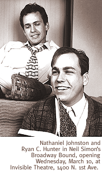 TERMS OF ENGAGEMENT. Modern gender politics come to a poignant head in David Mamet's Oleanna, presented by the Damesrocket Theater Company. The story unfolds when a struggling young university student seeks guidance from her professor in the privacy of his office. They suddenly find themselves locked in high-stakes combat when she accuses him of sexual harassment. Every word, every nuance becomes part of a twisted banter, leaving both physically and emotionally devastated in a drama The Boston Globe calls "a scorcher." Show time is 8 p.m. in the Damesrocket Theater, 125 E. Congress St. Performances continue at 8 p.m. Thursday through Saturday and 2 p.m. Sunday, through March 20. Tickets are $10, with discounts for seniors, students and groups. Call 623-7852 for reservations and information. BATTER UP. The big question: Will slugger Sammy Sosa hit one out of Tucson Electric Park? Will he even make the trip down from Mesa? Find out when the Boys of Summer continue spring training this week, with games at both shiny new Tucson Electric Park and venerable Hi Corbett Field. Today, the Chicago Cubs take on the Arizona Diamondbacks at TEP and the Seattle Mariners play the Colorado Rockies at Hi Corbett Field. First pitch for both games is 1:05 p.m. Games continue every day through the end of March. Tickets at Hi Corbett range from $12 to $4, with $2 outfield bleacher seats occasionally available. Admission at Tucson Electric Park ranges from $14 to $3. For details on the rest of the week's schedule, check this week's listings or call 327-9467 for the Rockies or 434-1111 for the Diamondbacks and Sox.
