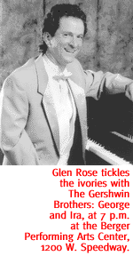 Free concert is 5 p.m. in the Boondocks Lounge, 3306 N. First Ave. For information, call 623-9533. DOUBLE CHORDS. The Arizona Repertory Singers combine chords with the St. Gregory Singers and the Palo Verde Christian School Mixed Ensemble for a night of fine vocalizing. The concert will feature separate performances of madrigals, spirituals and light classics by all three choral groups. Then they'll join forces to perform works by Beethoven, Brahms and Offenbach. Performance is 3 p.m. in UA Crowder Hall, located in the Music Building at the south end of the pedestrian underpass at Speedway and Park Avenue. Tickets are $5, $3 for students and seniors, and available at the door. For information, call 792-8141.