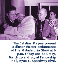 Quilt takes center stage at 7 tonight, Friday and Saturday in the Tucson High auditorium, 400 N. Second Ave. Tickets are $7, $5 for seniors and students, available at How Sweet It Was, the Southern Arizona AIDS Foundation, the door, or by calling 617-7549. PERILOUS PAPA. The perils of paternity take on a different meaning when Quintessential Productions presents The Father, by August Strindberg. This tale charts an army captain's increasingly strained sense of reality as he begins to question who the father of his sons might actually be. His growing paranoia is further tweaked by the machinations of a family conspiring against him. And if that isn't enough to draw you to the theatre, take note: This dark drama marks the acting debut of Al Perry, local musical bon vivant and hardcore Strindberg fan. He plays the part of Corporal Nojd. Tonight's preview performance is at 8 p.m. on the Quintessential stage, 118 S. Fifth Ave. Preview tickets are $8, $6 for seniors, students and military, available in advance by calling 798-0708. Performances continue at 8 p.m. Friday and Saturday, and 4 p.m. Sunday, through April 10. Tickets are $10, $8 for seniors, students and military.