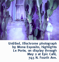 These color photographs resound with life, while the silver gelatin photos are equally vivid in their somber and stunning portraits. Esposito elevates the aesthetic nature of her "portals," treating them with a rare, symbolic respect. Through her lens they become more than simple entrances and exits, claiming a mysterious life force all their own. Le Porte will be on display through May 2 in the Epic Café, 745 N. Fourth Ave. Hours are 7 a.m. to 10 p.m. daily. Call 624-6844 for information. INTO THE LOOKING GLASS. God himself could get a good shave with the gigantic telescope mirrors produced right here in Tucson. Long known as a top astronomical hub, the UA creates its enormous looking glasses for telescopes around the world, in a process that's both painstaking and remarkable. Find out more about these reflectors and their makers when the UA Steward Observatory hosts Polishing Giant Mirrors to an Accuracy of One-Millionth of an Inch, presented by Dr. Buddy Martin. Following the lecture, you can check out the heavens through Steward's own 21-inch scope. The free lecture and viewing are at 7:30 p.m. in the Steward Observatory, Room N210, on campus at Cherry Avenue and University Boulevard.