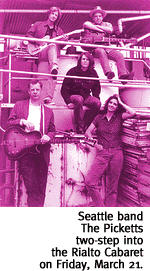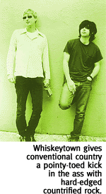 Whiskeytown is far closer to Jason and the Scorcher's wild western twang, Rank and File, X, or the hard-edged biker southern rock of Steve Earle. They cover Richard Hell and the Voidoids songs. They, like Wilco, Son Volt, or Colorado's 16 Horsepower, come to acoustic guitars and winsome ballads after having dug their way out from the prison of punk. They still know how to hide a musical shiv from the guards, and their guns are sometimes carved out of soap. None of them are above pulling punches, distracting with squalls of feedback, or sounding dirty. Rounding out the solid lineup of bands are Albuquerque's Hazeldine, who breathe high-desert wind underneath the lilting harmonies of Shawn Barton and Tonya Lamm. Drummer Jefferey Richards is best known for his work with Vic Chesnutt on "West of Rome." Transfixing and intense, their dark, wine-soaked ballads and lock-tite harmonies are addictive. A recently finished self-produced first LP is currently being shopped around, and will be distributed in Europe through Glitterhouse. Tracks can be found on Bloodshot's "Boone County" sampler. Hazeldine all met at a hippie grocery store, but play like they were born in the clubs, and reveal more at a waltzed crawl than a hundred bands hide at breakneck speed. No Depression recently made the jump from electronic (www.nodepresion.net) to print media. Inside the mag's bimonthly realm are bands and reviews, of course, but also an ad for an all-musician, alt.country cookbook. The record industry, noting the flagging sales of alternative bands, are willing to pick up on any grouping that looks like it might translate into sales. Particularly lucrative are bands that might sell well to two segments that buy lots of records: country and rock. Sitting in the LA office of A&M Records, mixing down "Four Leaf Clover" (a duet with Exene Cervenca for the new, unnamed record for Elektra) in his white El Scorcho T-shirt, chinos, and the first new pair of shoes he's bought since high school, Rhett Miller smiles. Their new record is going to be good. "We've given up our whole lives on the slim chance that this will work out, but the other day I saw a dating game, and the one thing that the cute girl said is that she liked everything except country music."