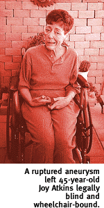 ![]() When It Comes To Crappy, HMO-Based Healthcare, Joy Atkins Has Already Paid Full Price. by Karen Brandel JOY ATKINS WAS like many of those who responded to a recent Gallop poll on healthcare--she was happy with her HMO, known as Partners Healthplan of Arizona. Then she got sick. She never dreamed she'd become mired in a complex lawsuit against Partners, and was stunned to learn that many people in her position--totally disabled due to substandard care--are unable to sue an HMO for malpractice. When Atkins began having severe headaches, she went to the primary physician Partners had assigned her. Based on her symptoms, the physician ordered a CT scan of Atkins' brain. Partners denied the costly scan, but the doctor re-requested it--a bold move according to several physicians who say their experience has been that HMOs sever contracts when physicians request costly procedures, thereby cutting off a large part of the doctors' incomes. After Atkins collapsed and lost consciousness at work, her doctor requested the scan a third time, because Partners had once again denied it. It was too late by then: Atkins had an aneurysm in her brain. Sadly, a CT scan could've picked that up before the aneurysm ruptured. The bleeding into Atkins' brain caused permanent damage, leaving the once-healthy 45-year-old legally blind and wheelchair-bound. Much of her memory is gone, her speech is slurred, and she suffers seizures.