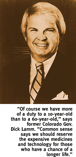 'A Duty To Die'Former Colorado Gov. Richard Lamm Says Old People Must Stop Hogging Increasingly Expensive Healthcare. DOCTORS' UNIONS--OF the type physicians at Tucson's Thomas Davis Clinic are forming to deal with their HMO overloads (See "Too Many Beds," right)--simply won't work, according to Richard Lamm, a former governor of Colorado turned healthcare reformer.