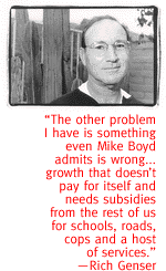 Genser opposed the recent county road bonds package. "You