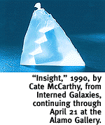 LIBERATED IMAGES. Proving that all art is ultimately vulnerable, the photograph's protective shield is being shattered in the UA Museum of Art's Penetrating Image glass and photography exhibit. Featuring two-and-three-dimensional constructs, the display is aimed at exposing how 11 artists. Steven Berardelli, Bob Campbell and Debra Goldman to Peter Houk, Valerie McEvyoy and Oona Nelson blur, crack and melt the boundaries between glass and photography. Freed from their repressive frames, the photos float and fuse as they are captured and released by glass. Exhibit runs through May 12 at the UA Museum of Art, located in the fine arts complex at Speedway and Park Avenue. Hours are 9 a.m. to 5 p.m. Monday through Friday, and noon to 4 p.m. Sunday. For details, call 621-7567.