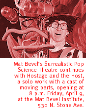 Probably not, and neither could we. But that's exactly what the two discoverers of Kartcher Caverns did. Now you can uncover their secretive methods, and why they were employed, when the Tucson Audubon Society hosts Kartchner Caverns: A Secret Revealed. Using slides, a yet-to-be-named Arizona State Park ranger will detail the history and geography of these vast caverns near Benson, from their historic discovery to modern environmental studies. The free discussion begins at 7 p.m. in UMC DuVal Auditorium, 1501 N. Campbell Ave. For information, call 629-0510. A NEW GO AT CARAVAGGIO. The adventurous folks at CityPlayers dust off a timeless drama with Caravaggio Revised. Based on a new adaptation of an old work by Irishman Frank McGuinness, the story unfolds in Rome, circa 1606, on the day Caravaggio killed a bloke in a brawl. This retelling focuses upon the hero and his relationship with street people who became his pals and models, and with his twisted patron, a Catholic cardinal. (See this week's Art section for a full review.) Show time is 7:30 p.m. in the CityPlayers Playhouse, 439 N. Sixth Ave. Performances continue at 8 p.m. Friday and Saturday, 2:30 and 7:30 p.m. Sunday, and 7:30 p.m. Monday through April 26. Tickets are $14, with discounts for students and seniors for Sunday and Monday shows. They're available in advance at Keuken Dutch restaurants, Little Bohemia, Emerald City Grille or by calling 571-1300.