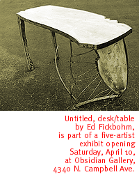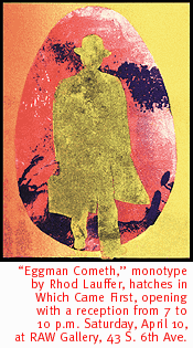 Which Came First runs through May 22, with an opening reception from 7 to 10 p.m. Saturday, April 10, in Raw Gallery, 43 S. Sixth Ave. Regular gallery hours are 1 to 5 p.m. Wednesday through Saturday, and during Downtown Saturday Night and Thursday Night Artwalks. For information, call 882-6927. TIMELESS TOMES. Get your hands on timeless literature when the Acorn Antique Guild hosts its Antiquarian Bookfair. Proceeds benefit the Tucson Symphony Orchestra. This well-bound harvest will include books on a myriad of topics, from Americana and Native Americans to natural history and works for wee ones. There will also be rare books, postcards and ephemera, and tomorrow author Donna McMenamin will be on hand for a booksigning from noon to 3 p.m. Tonight's preview runs from 5 to 9 p.m. in the Tucson Symphony Center, 2175 N. Sixth Ave. It will feature music and hors d'oeuvres. Admission is $15. The fair continues from 9 a.m. to 5 p.m. Saturday, at the same location. Admission is $5, free for children under age 17. For information, call 792-9155.