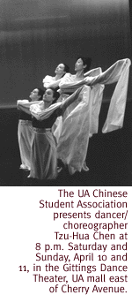 VAST TRADITION. China's rich dance tradition graces the Tucson stage with a performance by Tzu-Hua (Mimi) Chen. Trained at the Taiwan Academy of Arts, this gifted dancer/choreographer arrived on these shores well-versed in the techniques of Chinese traditional dance. Later adding ballet and modern dance to her repertoire, Chen eventually graduated from the UA, where she earned a New Traditional Outstanding Student Award.