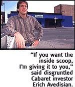 Straight away, Barrington filed an application for a Heritage Fund acquisition grant. The application, approved by the Heritage Fund's historic preservation office in September 1996, was the largest award granted that year at $218,000. Things were looking good for the Queen of Theaters. ENTER ERICH AVEDISIAN. A Detroit transplant who graduated from the UA in 1987 with a degree in psychology, Avedisian's future as an investor in real estate arose from the unfortunate circumstance of losing his mother in a plane crash. "About 1991, I got a settlement with Northwest Airlines, with which I bought some real estate--apartments, things like that," Avedisian says. He adds he just happened to have some cash on hand, having sold an apartment building, when he heard about the Rialto project through a mutual acquaintance who'd done some architectural consulting for Barrington. Avedisian never intended to be a partner in the theater. His interest was in opening the nightclub next to the theater, in the abandoned Trailways bus depot. The limited liability corporation (LLC) he and Barrington discussed at length and finally entered into was called the Rialto Cabaret Company. He estimates the date of his initial involvement to be June 1995; the first record of investment provided to The Weekly shows the amount of $75,000 dated September of 1995. "As much as I liked the theater and thought it was a great thing, I didn't see it as a viable business. For one, it's non-profit. And two, it just looked to me like it was going to take a lot of money before it ever got opened. I just wanted to open a nightclub," he said. When unfinished construction delayed the opening of the cabaret in September 1995, Avedisian grew nervous. "When the work wasn't really going on and things were going slow...I already had $50,000 in it," Avedisian says. "Every time I gave Bear extra money, we'd sit down and talk and I'd ask, 'What would it take to open this bar, Paul? I've got enough into it now, and I've gotta get this thing open. Let's hire some contractors.' We'd sit down and make phone calls, make a budget, a business plan, and I'd give him more money, and nothing would happen."
