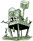 Chevron's Parabe oil platform and barge in the Niger delta. The