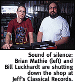 Tucson is about to lose another of its commercial cultural institutions, Jeff's Classical Records. Like The Haunted Bookshop, Jeff's will close at the end of June. After more than 20 years, current owners Brian Mathie and Bill Luckhardt are throwing in the towel.