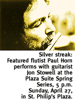 Performance is at 3 p.m. in St. Philip's in the Hills Episcopal Church, 4440 N. Campbell Ave. Tickets are $10, $5 for children ages 12 and under, available at the door. Call 299-6421 for details. IBERIAN SOJOURN. Marcia Gold-Planakis toured Spain exactly 500 years after the Jews were expelled from that country, and the result is Sephardic Journey, a poignant series of photographs documenting the journey. Harold A. Laynor's trip was a bit different. A rabbi in the Southwest, he found a unique way to blend regional culture with Judaism, embodied in a character named Reb Kachina. Laynor's Reb Kachina series joins Gold-Planakis in a new exhibit at the Tucson Jewish Community Center, 3800 E. River Road. Exhibit runs through May 27, with an opening reception from 2 to 4 p.m. today. Regular gallery hours are 9 a.m. to 9 p.m. Monday through Thursday, 9 a.m. to 6 p.m. Friday and Sunday. For information, call 299-3000. FLAUTED. All things reed-related will be on the block--against a backdrop of fine music--when the Tucson Flute Club presents a recital and silent auction. Club members will perform solo and in ensemble, as sheet music, books of solos, flute studies, and other music items are auctioned off. Free event begins at 3 p.m. in the Murphey Gallery, located in St. Philip's in the Hills, 4440 N. Campbell Ave. Call 321-4943 for details.