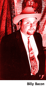 ![]() FASHION AND FAME: Wednesdays at the Club Congress haven't been quite the same since the beautiful, incomparable Chick Cashman dispensed with his regular weekly appearances. Despite a few interim shifts in Countrypolitan personnel--you may have noticed some familiar faces at the Club Crawl appearance (was Al Perry The Man on bass, or what?)--the glamour, not to mention the kick-ass music we've come to expect, remains undiminished. Returning with a fury on Friday, May 2, Cashman and the Countrypolitans play host and back-up band all evening to the inspiring and sensational (you might call her a diva, but I think she's too svelte for the costume) Angela Bowie, who unveils an all-new set of tunes especially for the occasion. And if that's not enough, Portland's Irving Claw Trio also makes an appearance, as does the Valley of the Sun's renowned queen of drag Felicia Farr, offering a full range of cabaret-style entertainment. Sources confirm she has real breasts and loves to show them off. Show time is 9 p.m. at Club Congress, 311 E. Congress St. HOT PICK: After such a long, intense struggle to keep the doors open at the Luna Loca Café, 546 N. Stone Ave., the time has finally come to bask in the moonglow. If you haven't made it down to check out any shows at one of downtown's most eclectic and musically liberated venues, get your feet wet with an event a little more sedate than the Luna Loca's usual repertoire. Bring a blanket, a pillow or a lawnchair, along with that dollar you found in the laundry last week, and check out the stellar evening of intimate acoustic music on the garden patio, starting at 8 p.m. Saturday, May 3. Set to entertain by the light of tiki torches are a variety of performers, including Chris Laterzo (in from California), Windsong Strum, Nervous Duane Normal, Gary Bear, Chris Morrison, and the debut performance of punk/country outfit Water. You can't beat it for a buck! As always, the Luna Loca is open to all ages, interests and haircuts. Additional performers are yet to be announced. Call 882-4488 for more information. SWAG SWINE: No, it's not a barbecue, but that is bacon you smell--in fact, it's Billy Bacon and the Forbidden Pigs. Get your Cinco de Mayo celebration started a few days early at 9 p.m. Saturday, May 3, at The Third Stone Bar & Grill, 500 N. Fourth Ave. No strangers to Tucson, Bacon and the Pigs squeal in from San Diego with a full trough of new material, aptly titled The Other White Meat. The Pigs pour it on thick, blending Tex-Mex, rockabilly, jump and swing blues and country into what they refer to as "Tex-Mex blues-a-billy" (one step beyond scrapple--everything and the oink!). I don't care what you call it, the bottom line is that your $4 at the door buys more rollicking, roadhouse-rock fun than you've seen this side of Hazard County. Call 628-8844 for more information.