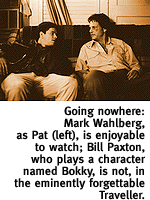 In fact, Traveller as a whole reminded me of other movies. Not any specific movie, just movies. The dialogue is familiar. The characters are retreads. There's a crusty-but-warm-hearted old guy with another funny name--Double D. He gets Bokky into trouble. There's a kid--a young man trying to come of age or something and prove he's a good traveller, too. (The kid is played by Mark Wahlberg, whose performance was one of the two enjoyable parts of the movie. The guy naturally exudes psycho-level malevolence.) They drive around the country conning people, but in almost no time Paxton is filled with remorse so he stops the cons. The scenes where he conned people were the second enjoyable part of the movie.