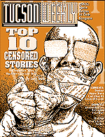 Frequent contributor Leo Banks won first place in the feature-writing category among medium publications with "A Noble Failure" (Tucson Weekly, March 14), which the judge found to be a "tightly written report on the 'experimental city' of Arcosanti...uses spare but precise details, creates a sense of place...sometimes effortlessness is the most admirable quality." Illustrator Joe Forkan won second-place honors for magazine covers among all publications statewide for his work on last year's "Top 10 Censored Stories" (Tucson Weekly, May 16). "I don't see how an astute reader could ignore Tucson Weekly's 'Top 10 Censored Stories' cover...particularly effective use of the magazine's block art illustration style, and this cover is both disturbing and compellling...," observed judge Jodi Davis of the Palm Beach Post.