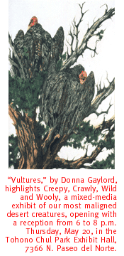 DESERT SPEAKS. Urban sprawl relentlessly marches on, and in these parts the Sonoran Desert is becoming its prime victim. But early in 1998, a coalition now including some 38 neighborhood and environmental groups banded together to fight back. The result is the Sonoran Desert Protection Plan, an ambitious scheme that eventually won the support of county officials. What is the plan, and does it have a chance of saving our endangered desert? Find out tonight when Carolyn Campbell, director of the coalition, presents a slide show detailing strategies behind the effort. The free slide show is at 7:30 p.m. in the UA Water Resources Research Center, 350 N. Campbell Ave. Call 323-0547 for information.
