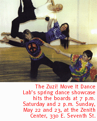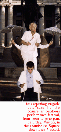 That notion lies at the heart of Rescue the Perishing, a thoughtful examination of marriage through the lens of Tucson playwright Judy Pringle, presented as part of Damesrocket Theater Company's new play reading series. The author's finely tuned language, grasp of the human condition, and her comedic instincts make Rescue the Perishing a "contemporary morality play with a sense of humor." Join them for a reading at 7:30 p.m. in Damesrocket Theater, 125 E. Congress St. Admission is $3, and includes an informal reception. For details, call 623-7852. BORN TO BE WILD. He's Italian and gay. She's straight and Jewish. Together, they endure the fundamental rite of passage in Lisa Diana Shapiro's Labor Pains, presented by The Invisible Theatre. A smash hit in L.A., this comedy chronicles the long relationship of two very dissimilar friends. Jake is a West Hollywood illustrator, and Gino is her gay roommate. Suddenly they discover that their ongoing collaboration to bear a child will bear fruit. But the plot grows murky when Gino's new lover enters the scene, and quickly grows confused about why his amour is bouncing off the walls. Labor Pains stars Amy Lehmann-Almquist, Brendan G. Murphy, Elizabeth Hunt-Lucarini, Matthew Edison, Kathryn Kellner and Brian R. Jenson. Preview performances run tonight and tomorrow at 7:30 p.m. in The Invisible Theatre, 1400 N. First Ave. Performances continue at 7:30 p.m. Tuesday through Thursday, 8 p.m. Friday and Saturday, and 2 and 7:30 p.m. Sunday, through June 13. Preview tickets are $11. Tickets range from $14 to $17.50, available at The Invisible Theater box office, or by calling 882-9721.