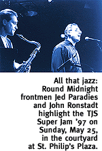 The free concert is from 4 to 6 p.m. at the Green Fields Country Day School, 6000 N. Camino de la Tierra. Dinner is served from 4 to 5:30 p.m., and tickets are $10 a plate. Bring lawn chairs and blankets. Call 322-0895 for details. MAJOR SPREAD. More than 50 of the Old Pueblo's top jazz hands converge on St. Philip's Plaza today for the annual Super Jam. The show will include such local luminaries as Cool Breeze, Jeff Haskell and John Denman, Sounds of Brazil, Xavier Marquez and Out of Nowhere, and Descarga. Benefits go to maintain the Tucson Jazz Society's education fund, which in turn provides scholarships for local high school and college students, and helps pay for the Society's all-county high school band, Jazz Werx. Performance is 6 to 10 p.m. in St. Philip's Plaza, 4380 N. Campbell Ave. Tickets are $8, $4 for TJS members, and available at the door. Call 743-3399 for information.