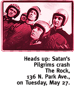 SATAN'S PILGRIMS. Hang on to your souls, rock and roll children, the Pilgrims are coming! Arriving via Portland, Oregon, these five, clean-cut young men (Bobby, Teddy, Johnny, Scotty, and Davey Pilgrim) will be decked out in matching outfits, capes a-flying, to bring Tucson a maximum reverb-and-twang fueled dance party starting at 9 p.m. at The Rock, 136 N. Park Ave. The cream of '60s revival all-insto surf rock, Satan's Pilgrims unleash music as fresh today as the Ventures were in their early heyday. The electric guitar trio (one whipping up a razor sharp rhythm, another rolling out the ground-shaking reverb, and still another riding all over the place with melodic leads) is backed by a rhythm section with a swinging beat that'll show you the business end of a Silvertone bass and ride cymbal. Don't even get us started on the Hammond H-3 organ named "Betsy."