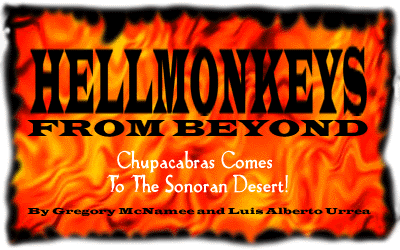 Chupacabras means "goat sucker." (Miami Herald columnist Dave Barry suggested it was also Puerto Rican slang for "attorney.") On the island of Puerto Rico, where stories of its activities first arose, it has been held responsible for a bloody wave of nocturnal terror, slaughtering whole herds of cows, chickens, and sheep. Last Halloween, as reported in the daily tabloid El Vocero, the beast "sucked dead" 20 parakeets. In an assault reminiscent of that on the Espinoza household, the monster was also reported to have jumped in a window and "murdered" a stuffed teddy bear, which it then covered in a "puddle of slime." Before escaping back out the window, the chupacabras left a "rancid piece of meat" on the sill. Lately, it appears, the chupacabras has acquired a taste for human blood as well, giving the tale--one that has quit Puerto Rico for the broader climes of continental North America--a dark new twist. Tokyo has its Godzilla, Loch Ness its sea serpent. And now Mexico, and lately the Sonoran Desert borderlands, has a monster all its own, giving joy to demonologists, UFOlogists and teratologists throughout the region. AS IT TURNS out, the chupacabras--or something very much like it--has been seen in Tucson before. Native Tucsonan Rick Scherb, the owner of R&P Auto, recalls, "When I was a kid in the '50s, we used to hear all these stories about a Goatsucker thing, only this one was half kangaroo rat. It supposedly would come up the Santa Cruz from Nogales and get anyone out wandering at night. The story disappeared in the '60s, but now it's back." While it was around, other stories have it, the "goatsucker thing" chewed up flocks across southern Arizona, leaving carnage in its wake. Joe Urrea, a lifelong resident of the Tucson area, had a run-in with the creature in the 1950s, when his family was homesteading outside of Oracle. One day when he was playing in the yard, Urrea says, the door of the outhouse creaked open. There, to his surprise, lurked a tall kangaroo. It peered out around the edge of the door, then beckoned him to come forward. Urrea believed the creature meant to do him harm. He ran, and never saw it again.
