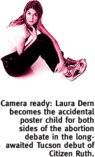 ![]() Controversial 'Citizen Ruth' Has Come A Long Way, Baby. By James DiGiovanna IF YOU SEE only one comedy about a paint-huffing, unwed, pregnant mother of four who becomes a pawn in the abortion wars, make it Citizen Ruth. This deeply layered film utilizes both an intelligent visual sense and a strong script, rare combinations in this day of beautiful-but-vapid "art films," many from Citizen Ruth's production company, Miramax.