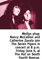 As Tucson's premier Irish folk band, the Molly's need little in the way of formal introduction. For their part, the Pipers are a hometown bunch who recently landed top honors on the competition circuit in San Diego, Costa Mesa and Pleasanton, California, and were named the 1997 Championship Band by the Western United States Pipe Band Association. Show time is 8 p.m. in The Hut, one of the newest and coolest venues to open in the downtown area. It's that curious brick-and-tin building a stone's throw north of O'Malley's, on Fourth Avenue and Eighth Street. Tickets are $8 at the door, with proceeds benefiting the Pipers' pilgrimage toward fame. Call 626-2235 for information. ROYAL RETURN. A special music event tonight marks both a welcome return and a sad departure, as two of Tucson's favorite musicians share the stage for the last time--for the foreseeable future, at least. Blues veteran Rainer, inducted into the Hall of Fame at last March's TAMMIES awards, returns in his first official gig in more than a year; and special guest Heather Hardy joins in on a few numbers in her last scheduled performance before she skips town for the Big Apple. Also sharing the bill in this highly personal performance is prolific singer/songwriter Doug MacLeod, whose tunes have been performed by everyone from Papa John Creach to Dave Alvin. This is not a show to miss. For more on Rainer, see the interview in the Music section for details. Show time is 8 p.m. in the Tucson Center for the Performing Arts, 408 S. Sixth Ave. Advance tickets are $10, $8 for TBS and KXCI members, available at Hear's Music and Piney Hollow. Call 297-9133 for details.