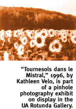 Into Light, an exhibition of Kathleen Velo photographs and Karen Fitzgerald prints, continues through June 26 at the Rotunda Gallery, on the third floor of the UA Student Union. Hours are 8 a.m. to 10 p.m. daily. For information, call 621-5123. Broken Dreams: Alex Rivera, 1974-1990 continues though June 28 at José Galvez Gallery, 743 N. Fourth Ave. Summer hours are 11 a.m. to 3 p.m. Wednesday through Friday, 4 to 8 p.m. Saturdays. For information, call 624-6878.