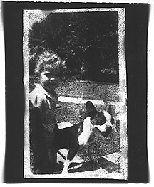 Set somewhat apart from the others thematically is S. Greenwell's multimedia piece, "Cannis Familia," based on found dog snapshots. Greenwell says she happened on a treasure trove of pictures near the dog pound. The snapshots chronicle generations of beloved Rovers and Spots, posing with their owners on lawn chairs, on couches, on linoleum kitchen floors. The oldest shows a settler family standing proudly with their dogs in front of their log cabin. Greenwell says she's fascinated by the way people seek to tame nature by taming dogs.