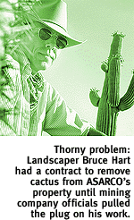 The latter category includes chaps like Bruce Hart, a mom-and-pop Tucson landscaper and cactus wholesaler who wears his hair flowing, hires different-drummer types, and was silly enough to spout his doubts about ASARCO's current drive to launch a sprawling mine in the beautiful Santa Rita Mountains. As owner of BK Cacti, Hart had what he thought was a long-term contract to pluck plants from some 3,000 acres of ASARCO land next to its Mission Complex mine in Green Valley, blazing the way for new digs. After winning a bid and forking over $7,500 for rights to sell the succulents, he instead found his agreement terminated. He estimates the dispute will cost his company $400,000 over the next decade. Meanwhile, he says those tons of plants--including more than 2,500 saguaros--he was slated to yank will now likely just be plowed under. Hart readily admits some of his staff are gay, most share his own grooming preferences and, more likely than not, also oppose ASARCO's controversial plans to rip up the Santa Ritas' northern flanks in search of copper. All of which didn't sit well with the mining company's traditionally minded, neatly coifed top honchos, he says. "Out there at the mine, it's pretty redneck and real straight, like the last-of-the-Wild-West kind of thing. Lots of the miners don't have alternative sorts of lives, which I don't think they like too much either, whether it's lesbian or whatever. And we all have long hair, which doesn't help.