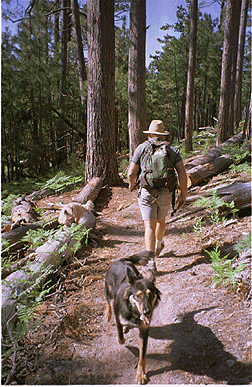 Cutline: Ten paces: Pete Kresan and Out There Dog Shelby split their navigational differences on the Box Camp Trail. Photo by Kevin Franklin