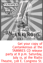 SWEET RELEASE. Downtown's historic Rialto Theatre toasts Tucson's musical best with the TAMMIES CD Release Party. This powerhouse show will include top vote-getters Shoebomb, Greyhound Soul, The Phantom Limbs, Funky Bones, 35 Summers, The Studdrifters, Sapphire Kieft, Creosote and Crawdaddy-O--all featured on the TAMMIES CD sampler.