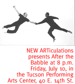 NEW ARTICULATIONS. Their name says it all; and Tucson's NEW ARTiculations--the newest dance troupe in town--presents a collection of modern dances called After the Babble. The evening performance features premiere choreography by local talents Nathan Dryden, Jennifer Pollack, Leigh Ann Rangel and Tammy Rosen, and well as guest choreography by Tommy Parlon, an instructor from Kent State University. For more information, see this week's Arts section.
