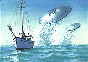 He first got involved in the UFO network in the early '80s when he met Tucsonan Wendell Stevens, a former military man who has written several ET books. Although Nichols "expected a real fruitcake," he was impressed with Stevens and began illustrating some of his stories. As he was drawn deeper into the community, he became more convinced something was going on.